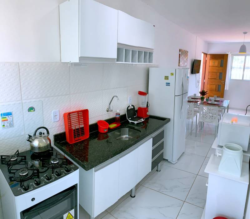 -Cozinha completa com forno, microondas, liquidificador, torradeira, geladeira com freezer Electrolux.